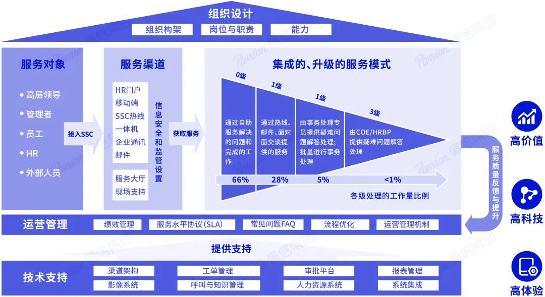 整合共性的集团需求(如员工信息、薪酬核算),构建产品化、体系化的共享服务平台,通过流程再造实现高效交付。例如某电信巨头在建立HRSSC后,事务处理效率提升50%,人力成本降低22%。